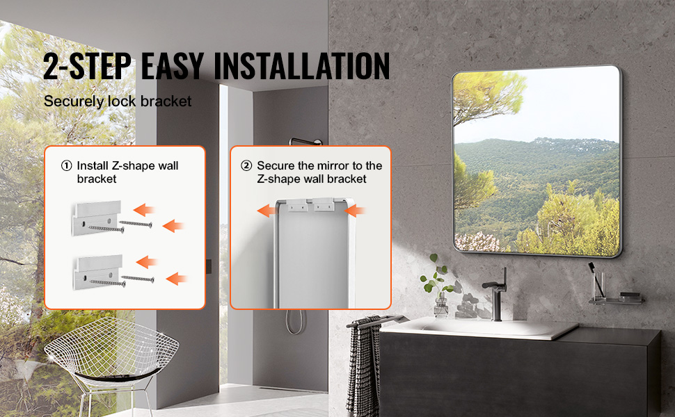 Nástenný držiak tohto nástenného kozmetického zrkadla v tvare písmena Z zjednodušuje inštaláciu, čím minimalizuje potrebu predvŕtaných otvorov alebo obavy z poškodenia steny. Stačia dva jednoduché kroky a zrkadlo sa bezpečne pripevní na miesto.