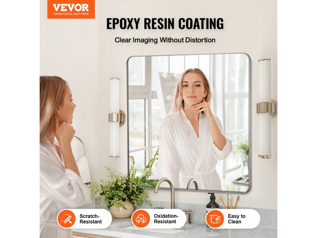 Ľahký rám zrkadla vyrobený z vysokokvalitnej hliníkovej zliatiny je odolný voči korózii a zachováva si lesk aj vo vlhkých priestoroch, ako sú kúpeľne, a ponúka dlhotrvajúcu odolnosť s elegantným a moderným vzhľadom.