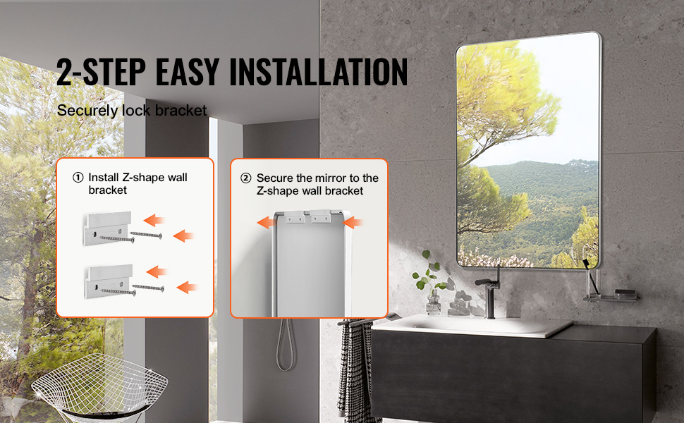 Nástenný držiak tohto nástenného kozmetického zrkadla v tvare písmena Z zjednodušuje inštaláciu, čím minimalizuje potrebu predvŕtaných otvorov alebo obavy z poškodenia steny. Stačia dva jednoduché kroky a zrkadlo sa bezpečne pripevní na miesto.