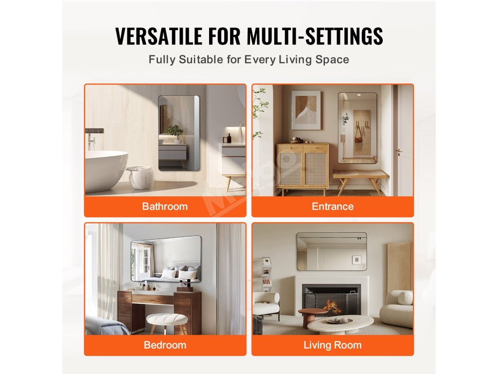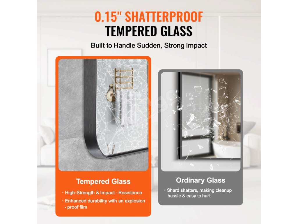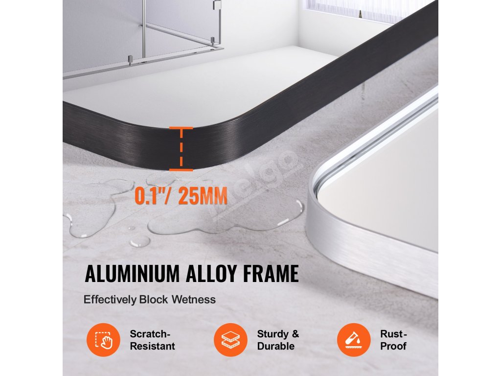 Ľahký rám zrkadla, vyrobený z vysokokvalitnej hliníkovej zliatiny, je odolný voči korózii a zachováva si lesk aj vo vlhkých priestoroch, ako sú kúpeľne, a ponúka dlhotrvajúcu odolnosť s elegantným a moderným vzhľadom.