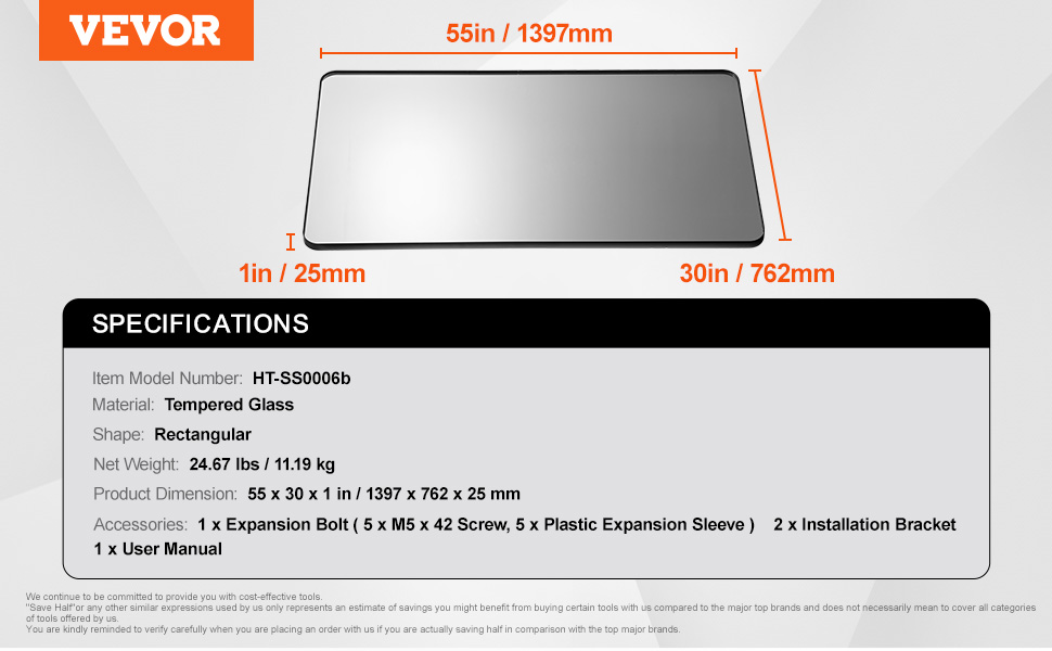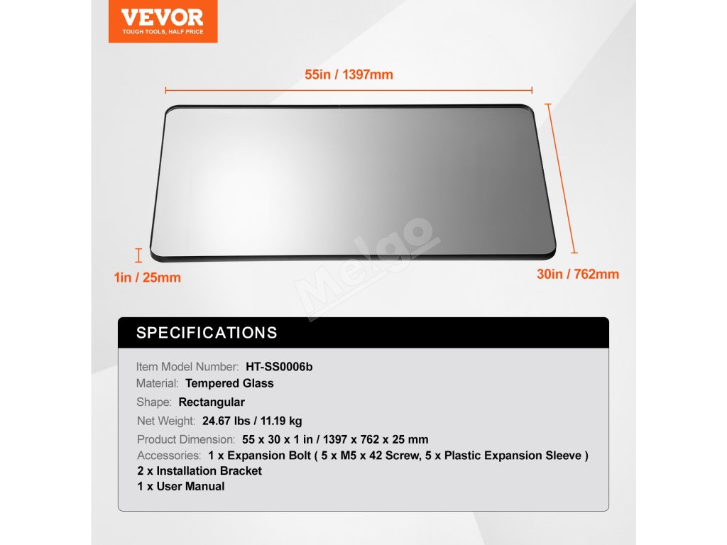 | Rozmery výrobku | 55 x 30 x 1 palec / 1397 x 762 x 25 mm |