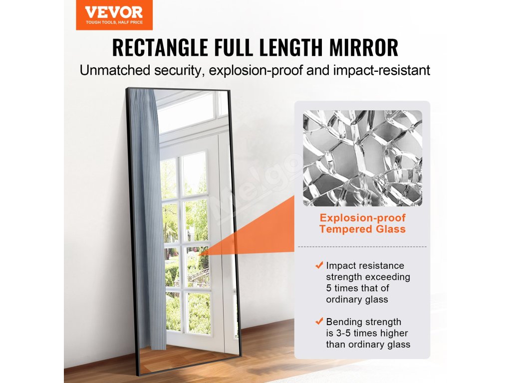 Stojacie zrkadlo 71"×31" s tvrdeným sklom a hliníkovým rámom čierne