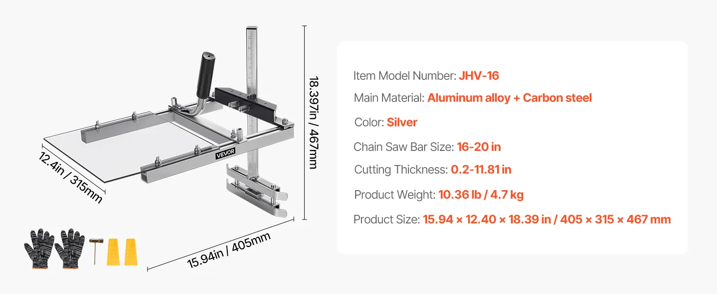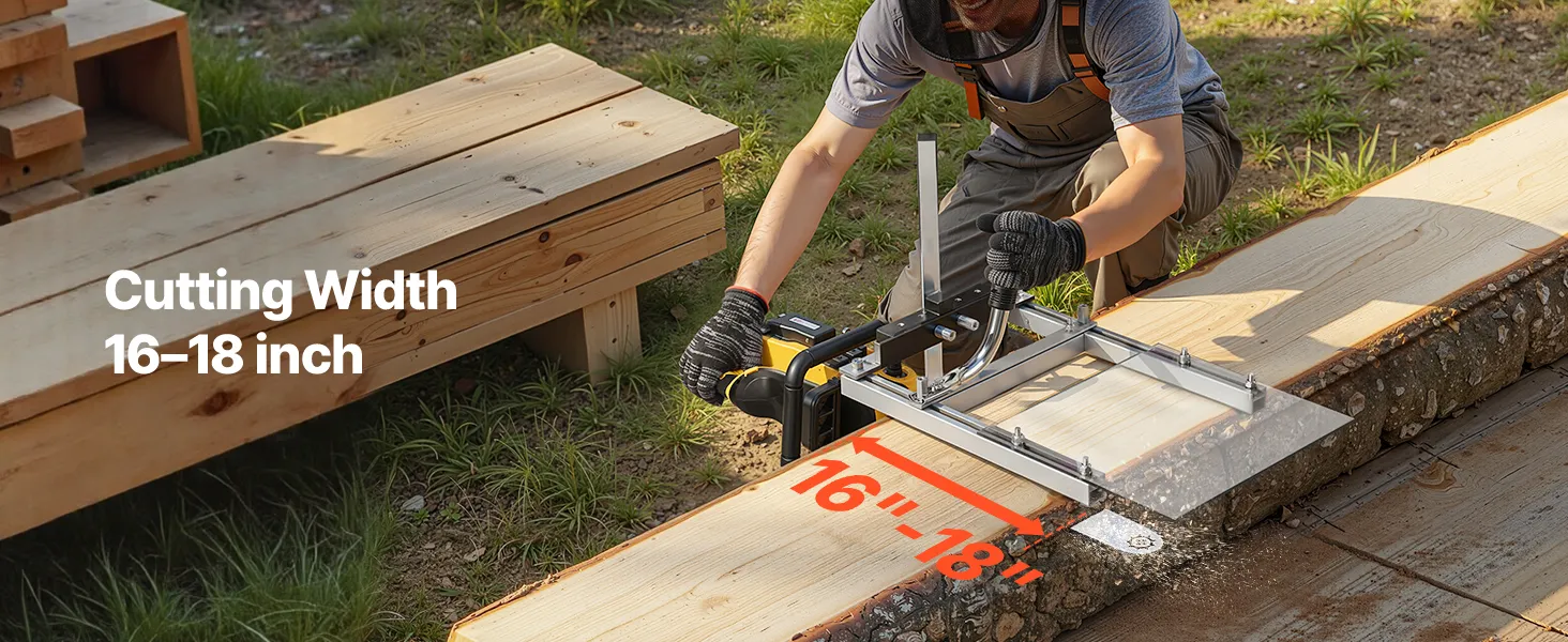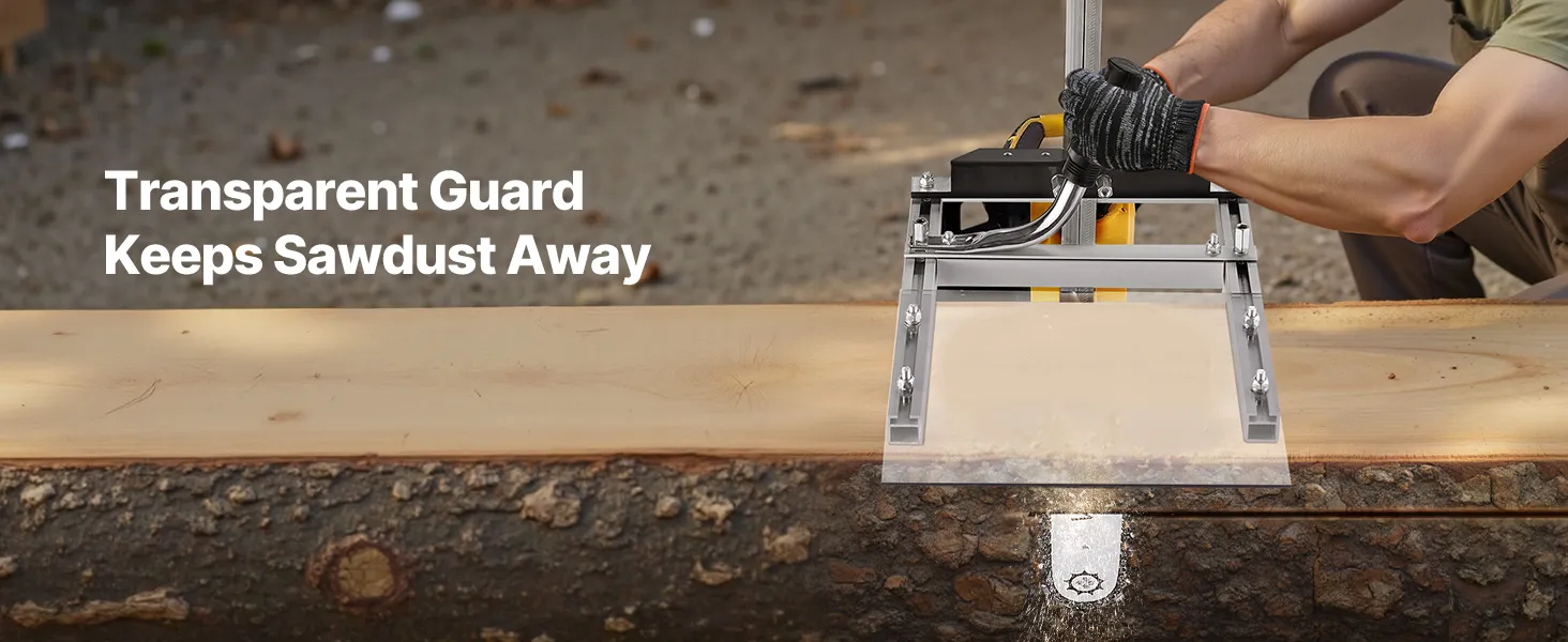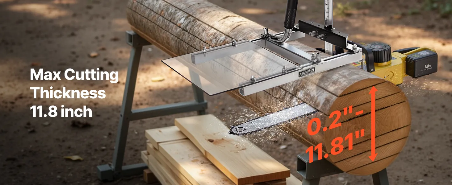 Fréza na reťazovú pílu je kompatibilná s vodiacimi lištami reťazovej píly od 16 do 20 palcov s nastavením hrúbky od 0,2 do 11,81 palca, aby vyhovovala rôznym typom dreva a potrebám rezania