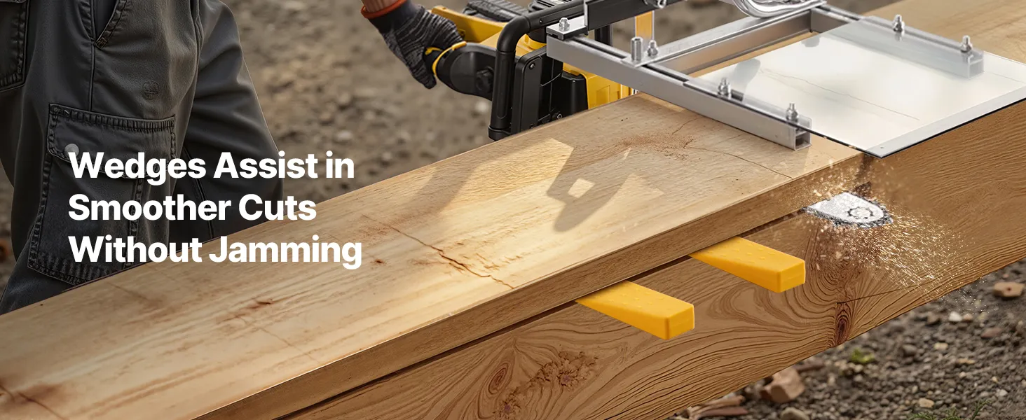 Reťazová píla sa dodáva s dvoma klinmi na rezanie guľatiny, ktoré zabraňujú zovretiu reťaze a zabezpečujú hladšie a bezpečnejšie rezy.
