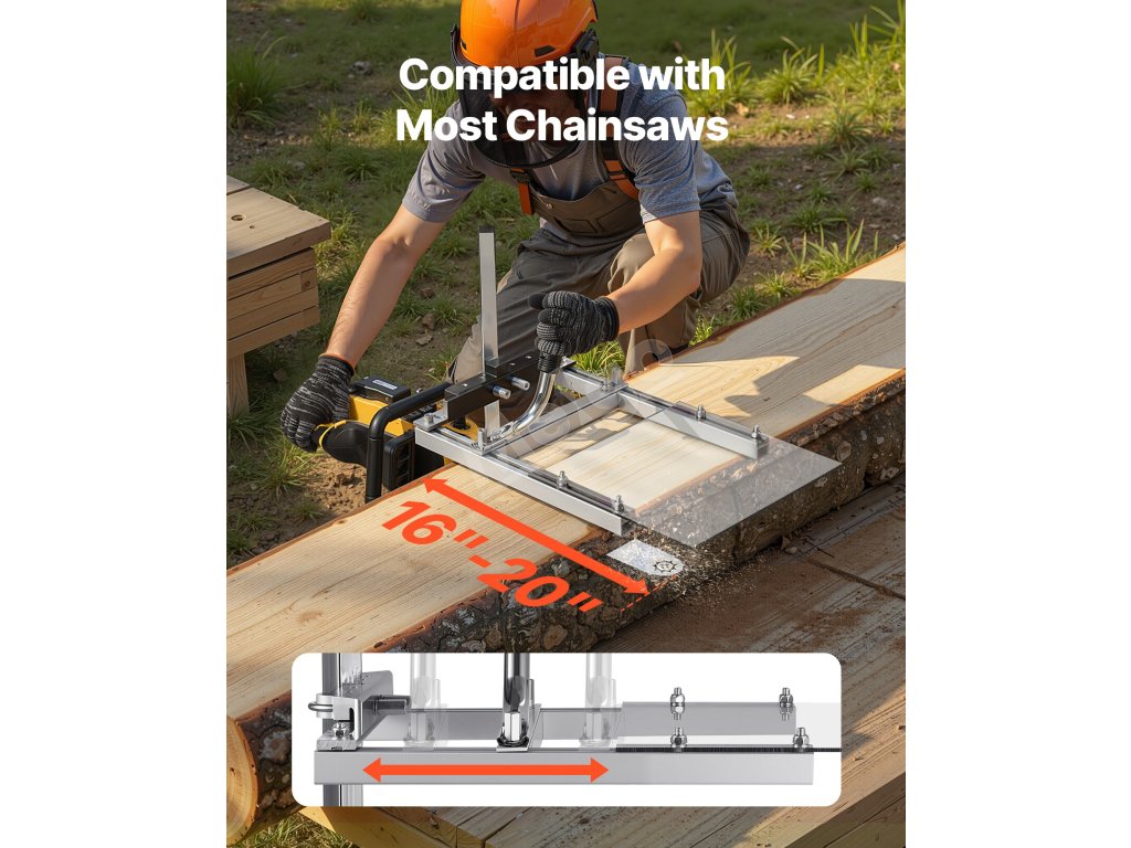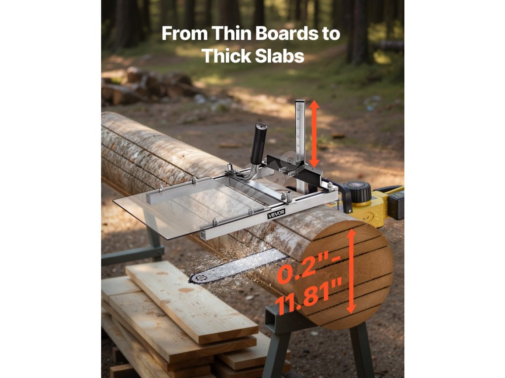 Fréza na reťazovú pílu je kompatibilná s vodiacimi lištami reťazovej píly od 16 do 20 palcov s nastavením hrúbky od 0,2 do 11,81 palca, aby vyhovovala rôznym typom dreva a potrebám rezania
