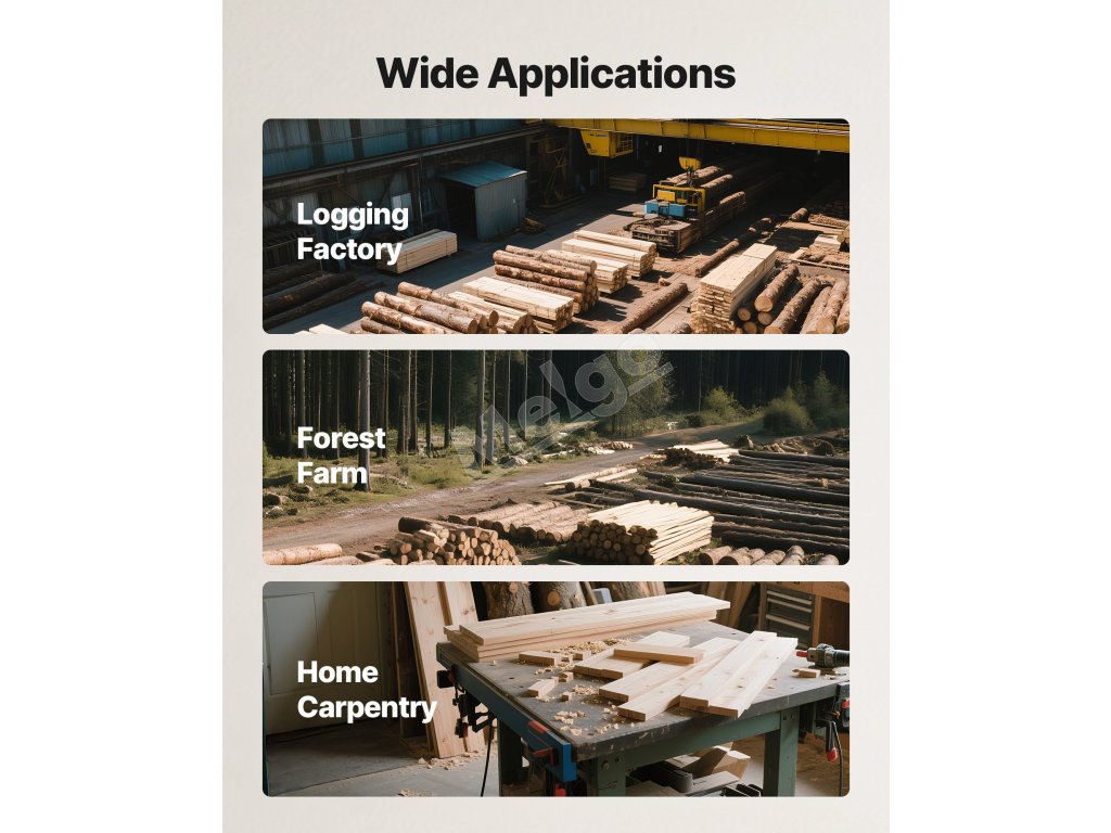 Táto vertikálna reťazová fréza je vhodná pre dosky s priemerom 2"-6" na presné vertikálne rezy, ktoré premenia hrubé polená na hladké a rovnomerné rezivo.