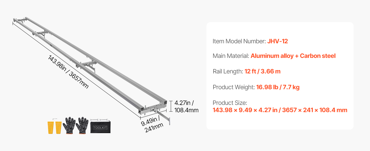 | Rozmery výrobku | 143.98 × 9,49 × 4,27 palca / 3657 × 241 × 108,4 mm |