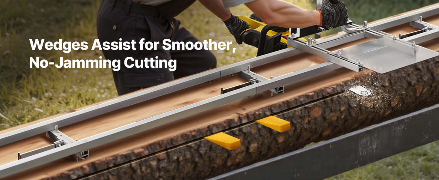 Koľajnica píly obsahuje dva kliny, ktoré zabraňujú pritlačeniu pílového kotúča a zabezpečujú plynulú a stabilnú prevádzku.