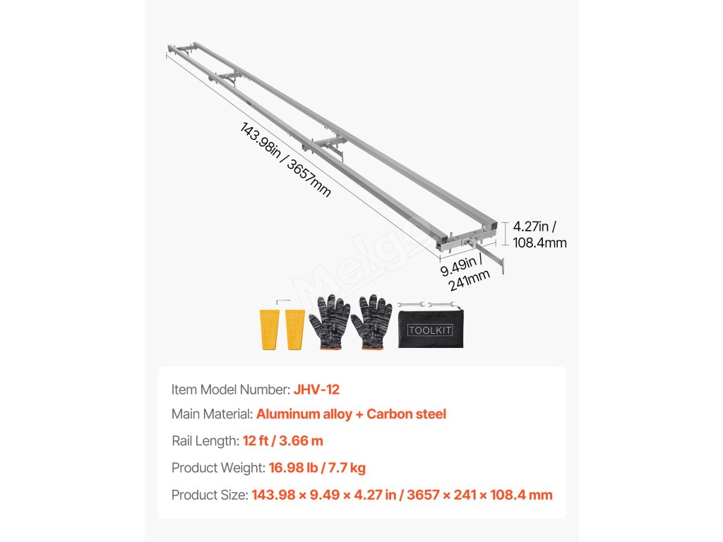 Vodidlový systém pre reťazovú pílu 3.66 m, 4 priečky, hliník, 2 kliny