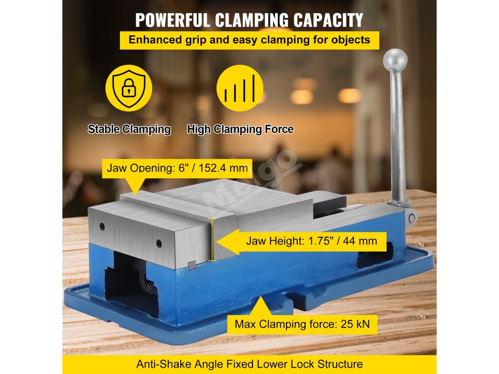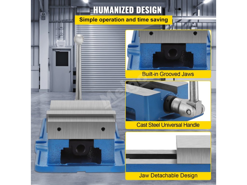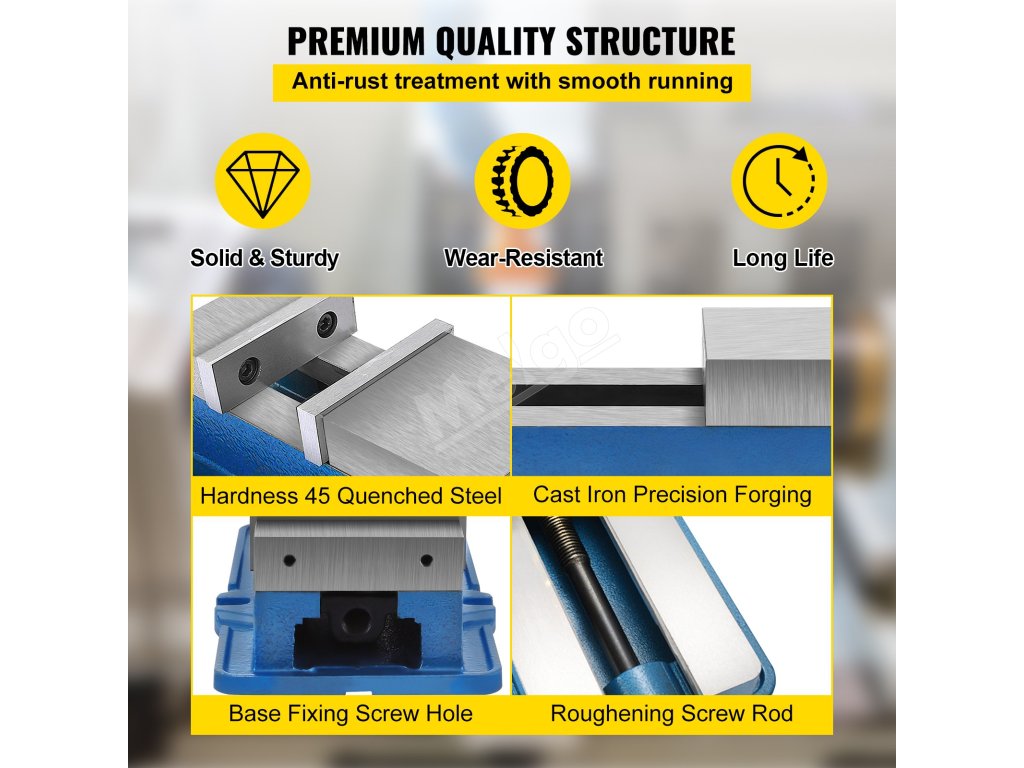 Zverák je vyrobený z liatiny HT250 so silnou húževnatosťou a vysokou pevnosťou v ťahu. Vnútorné zdokonalené brúsenie, hladké a stabilné, bez zasekávania.