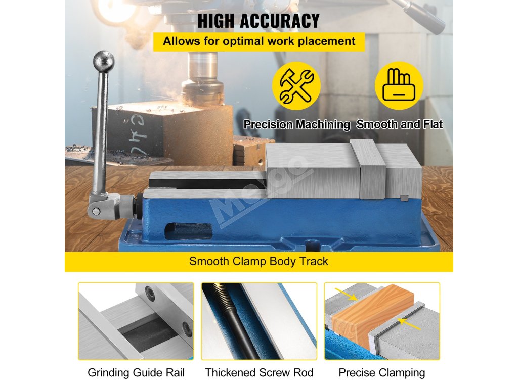 Presný frézovací zverák je hlavným príslušenstvom presného frézovacieho stroja a NC/CNC obrábacieho stroja. Je vhodný na dokončovacie frézky, vŕtačky a presné diely.