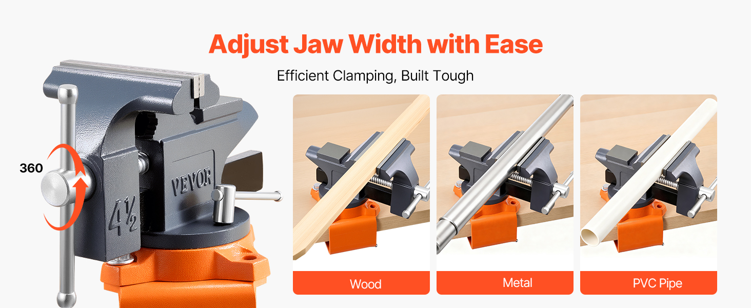 Náš prenosný zverák umožňuje jednoducho nastaviť šírku čeľustí a maximálny otvor na uchytenie dreva, kovu, PVC rúrok a ďalších materiálov.