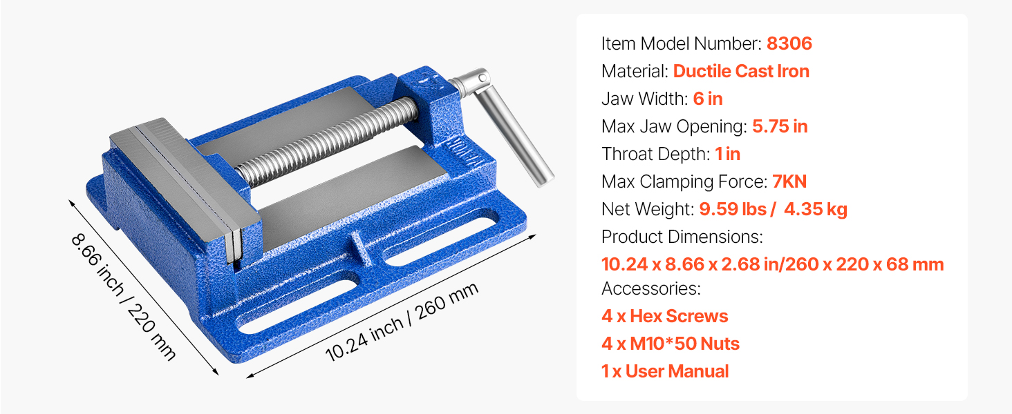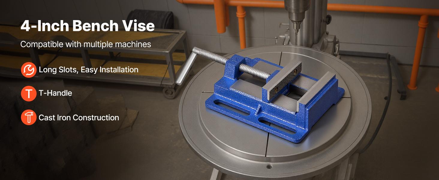 Tento vŕtací zverák vyrobený z vysokopevnostnej liatiny je vybavený dlhými drážkami na jednoduchú inštaláciu a premiestňovanie. Je navrhnutý pre všestranné použitie a hodí sa na frézky, vŕtacie lisy a ďalšie stroje.