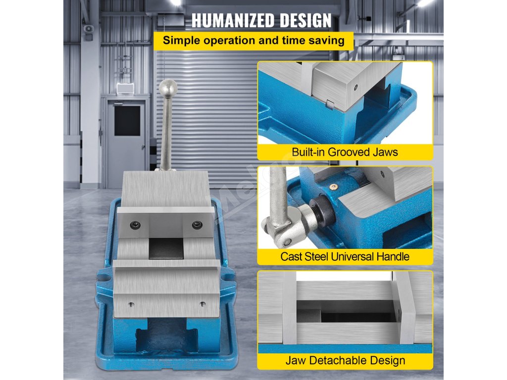 Zverák je vyrobený z liatiny HT250 so silnou húževnatosťou a vysokou pevnosťou v ťahu. Vnútorná jemná brúsna úprava, hladká a stabilná, bez zasekávania.
