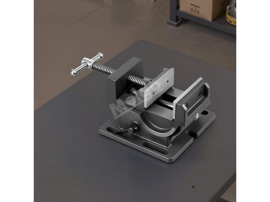Tento naklápací zverák pre vŕtacie lisy umožňuje presné nastavenie uhla v rozsahu od 0° do 90°, čím spĺňa vaše potreby pri viacúhlovom obrábaní.