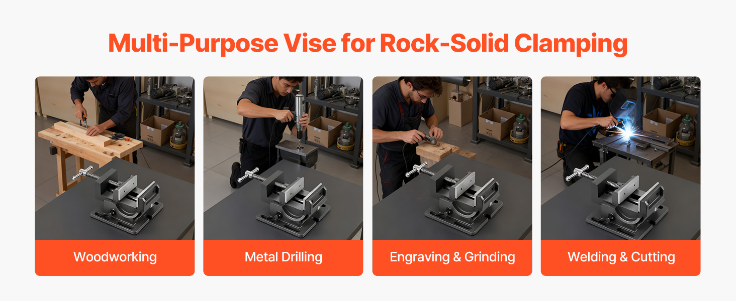 Tento strojnícky zverák na pracovný stôl je vhodný na obrábanie dreva, vŕtanie do kovu, rezbárstvo, brúsenie, zváranie a rezanie. Univerzálny nástroj pre rôzne potreby dielne.
