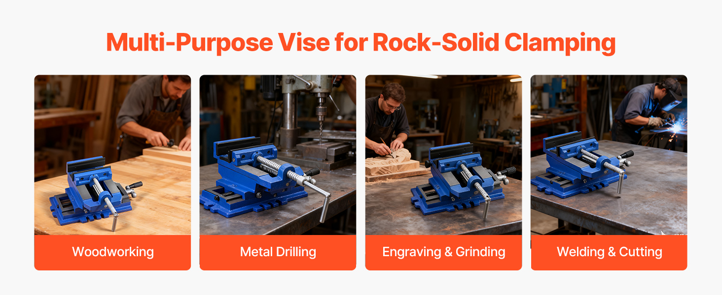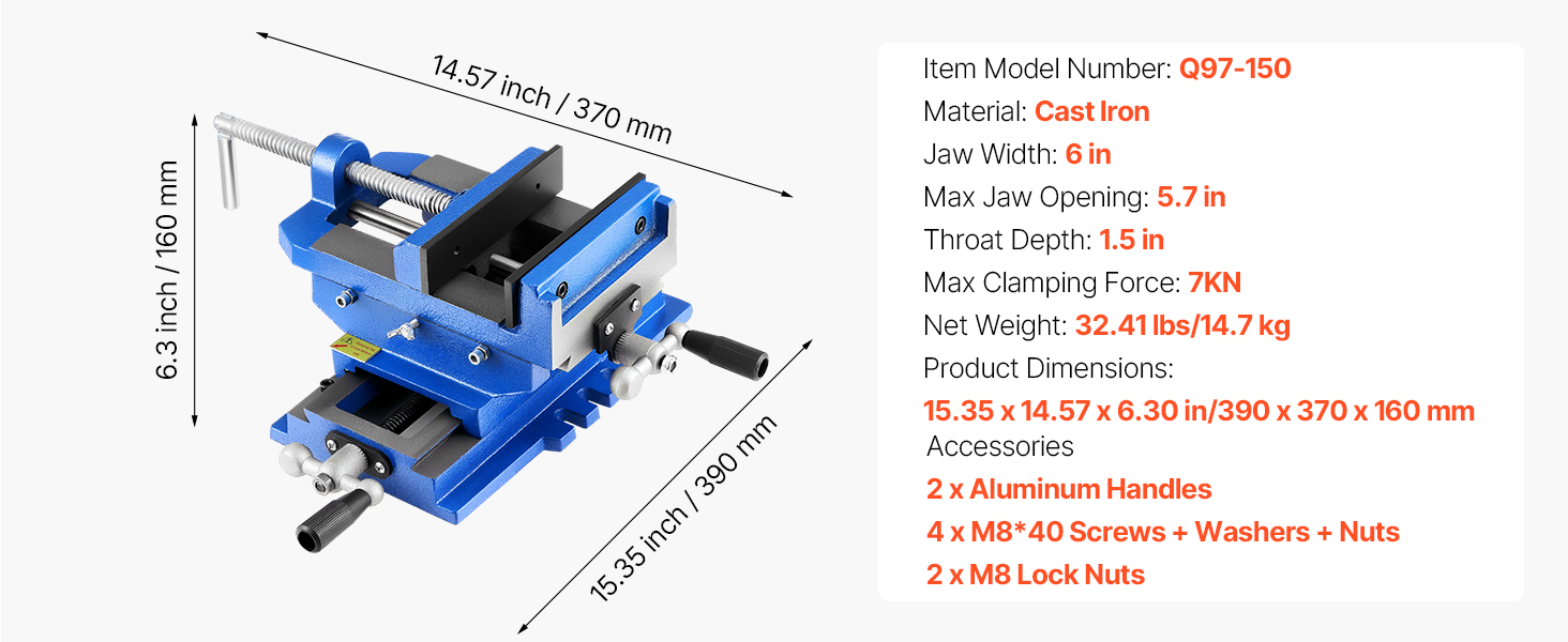 Tento krížový posuvný zverák na vŕtacie lisy je vyrobený z vysokopevnostnej liatiny a umožňuje presné nastavenie v dvoch osiach X/Y. Jeho dvojité rukoväte umožňujú plynulý horizontálny a vertikálny pohyb. Ideálny pre frézovacie stroje, vŕtacie lisy a ďalšie zariadenia.