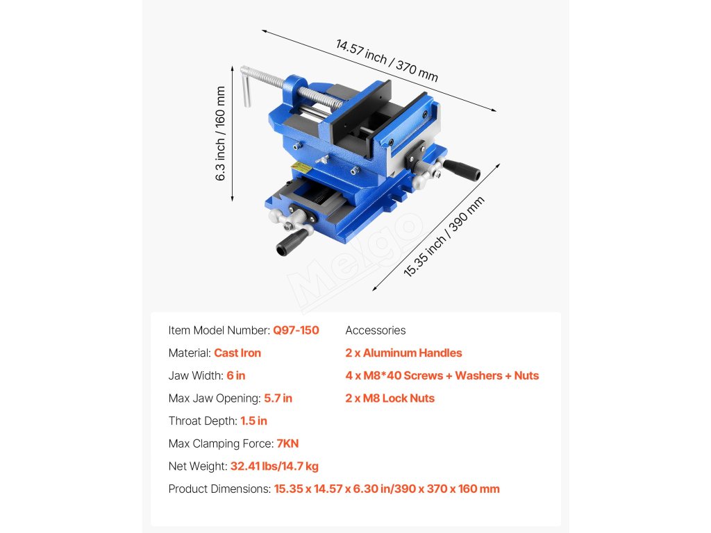 Stolný zverák 2-osý x-y, čeľuste 6 inch, otvorenie 5.7 inch, liatina