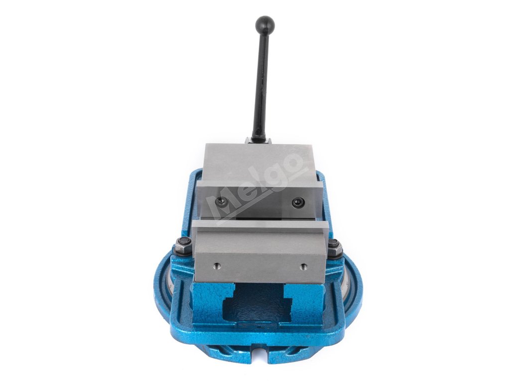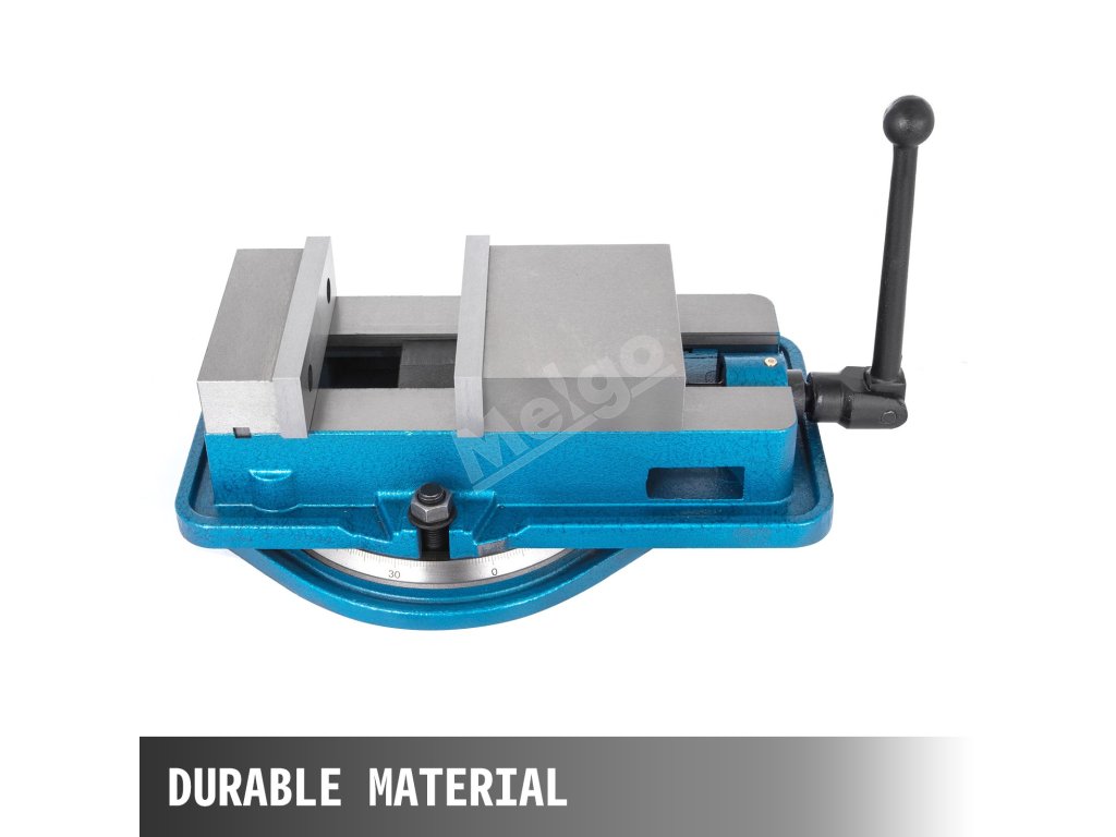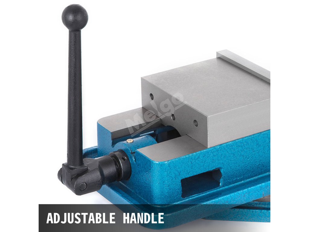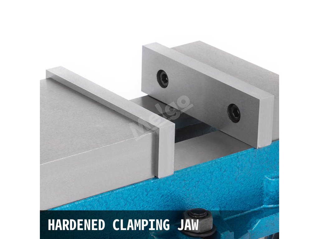 Frézovací zverák má silnú upínaciu silu a dokáže veľmi bezpečne upevniť obrobky. Šírka čeľuste: 5'' Otvorenie čeľuste: 5''.