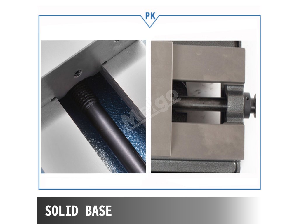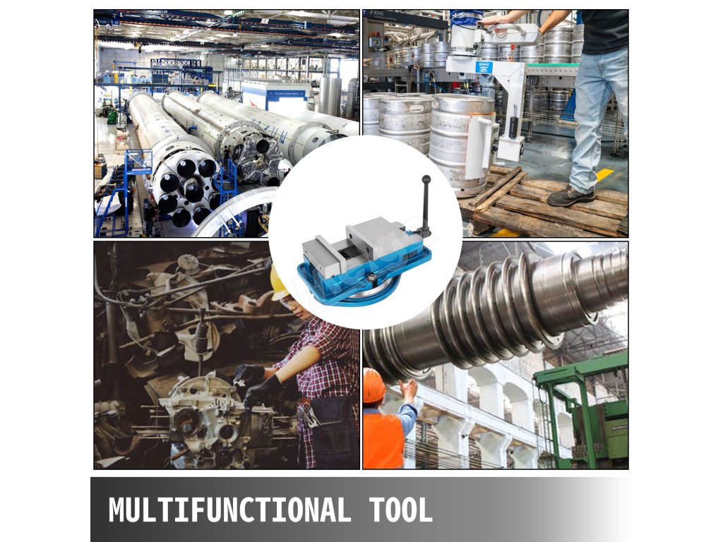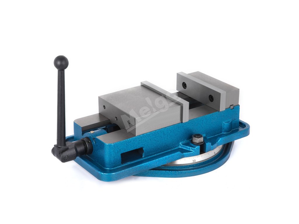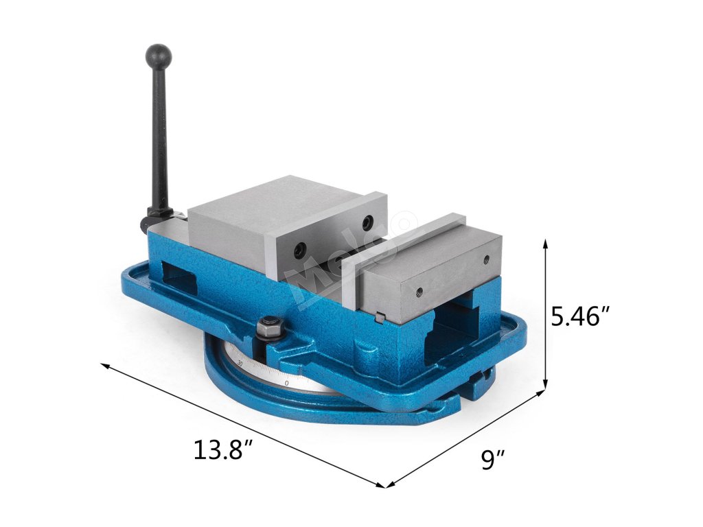 Frézovací zverák má silnú upínaciu silu a dokáže veľmi bezpečne upevniť obrobky. Šírka čeľuste: 5'' Otvorenie čeľuste: 5''.