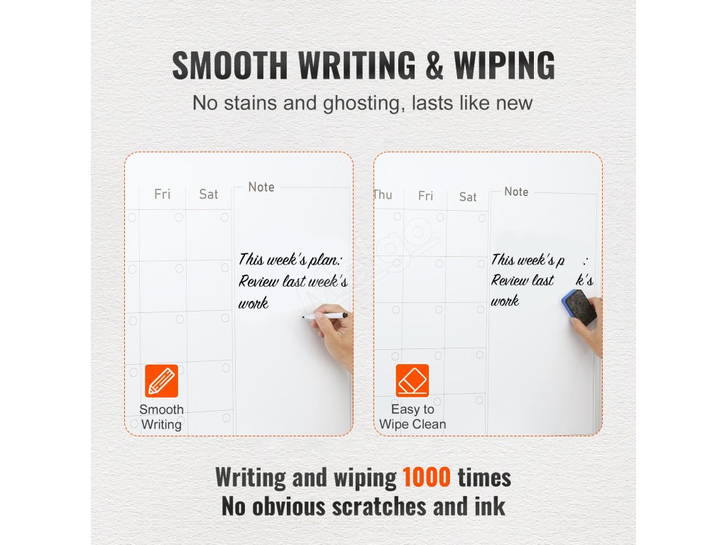Tabuľa VEVOR Calendar Whiteboard má magnetický povrch. Vďaka tomu môžete pomocou magnetov pripevniť poznámky, obrázky alebo pripomienky. Povrch sa tiež ľahko čistí. Suché stierateľné fixky sa bez námahy stierajú bez zvyškov. Vďaka tomu bude vaša tabuľa vždy vyzerať úhľadne a profesionálne. Magnetická funkcia zvyšuje pohodlie. Dôležité predmety môžete mať na dosah. Jednoduché čistenie šetrí čas. Je teda ideálna do rušného prostredia.