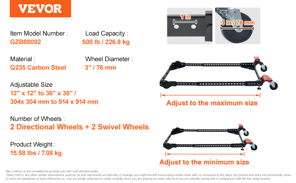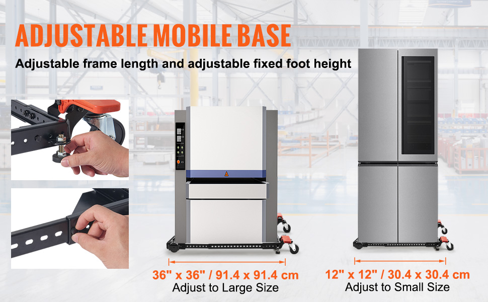 Či už máte do činenia so štvorcovými alebo obdĺžnikovými strojmi, tento mobilný podstavec na ťažké zaťaženie sa dá nastaviť na dĺžku a šírku. Ideálna pre priemyselné linky, sklady alebo vašu garáž.