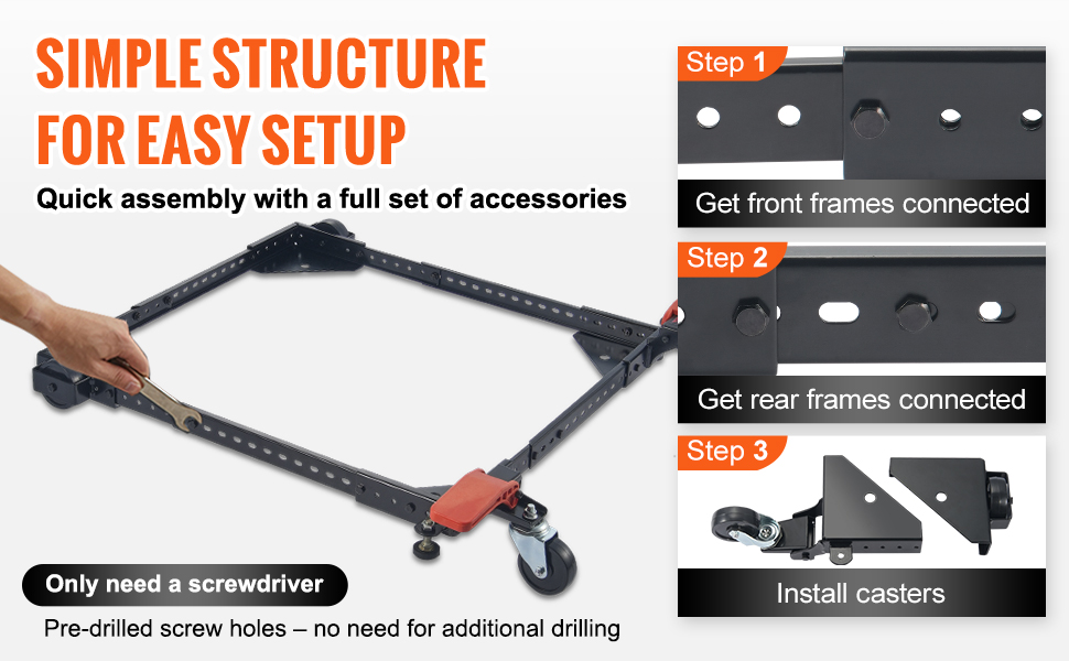 Máte skrutkovač? To je všetko, čo potrebujete na montáž alebo demontáž našej nastaviteľnej mobilnej základne. Dodávame všetky diely a ľahko použiteľný návod, aby ste sa mohli v okamihu rozbehnúť.