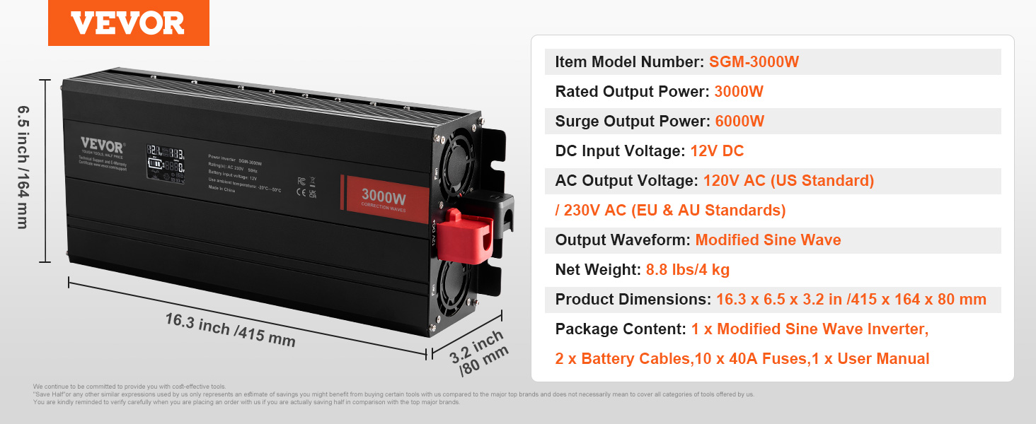 | Menovitý výstupný výkon | 3000W |