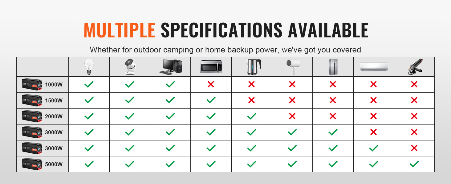 Objavte dokonalý súlad s vašimi energetickými potrebami s našimi meničmi energie! Ponúkame výkonové špecifikácie 1000 W, 1500 W, 2000 W, 3000 W a 5000 W spolu s možnosťami modifikovanej sínusovej vlny a čistej sínusovej vlny, čím uspokojíme všetky potreby - od najmenších digitálnych prístrojov až po najväčšie domáce spotrebiče.