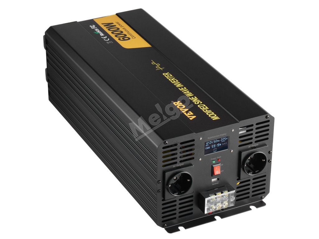 Menič napätia 6000 W DC 12 V na AC 230 V, modifikovaný sínus, LCD