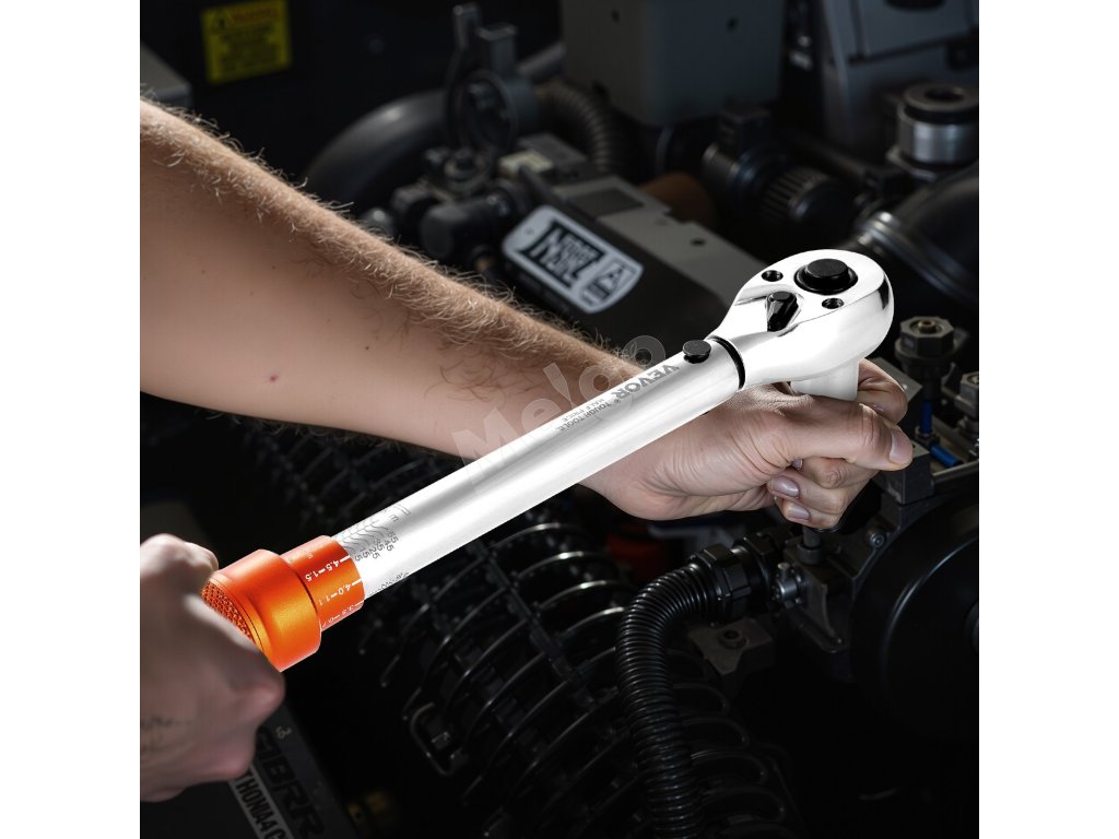 Prednastavená presnosť krútiaceho momentu ±3 % spĺňa potreby presných prístrojov a špičkovej údržby automobilov. Ráčna so 72 zubami sa pri každom kliknutí otočí o 5°, čo umožňuje jednoduchú prácu v stiesnených priestoroch alebo pri potrebe jemného nastavenia.