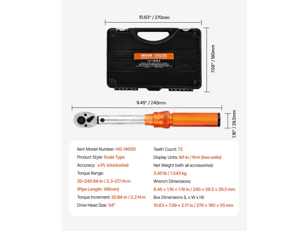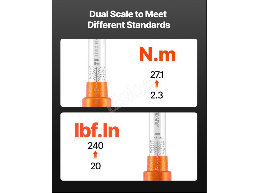 Súprava momentového kľúča 1/4inch 20-240 lbf-in / 2.3-27.1N.m ±3%