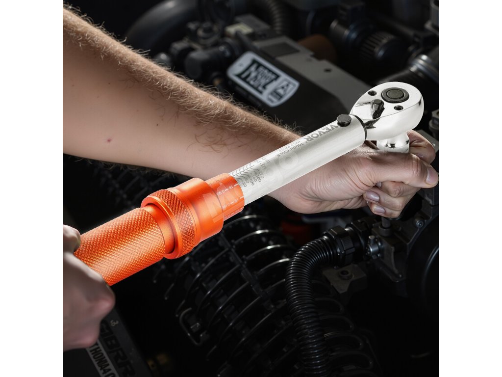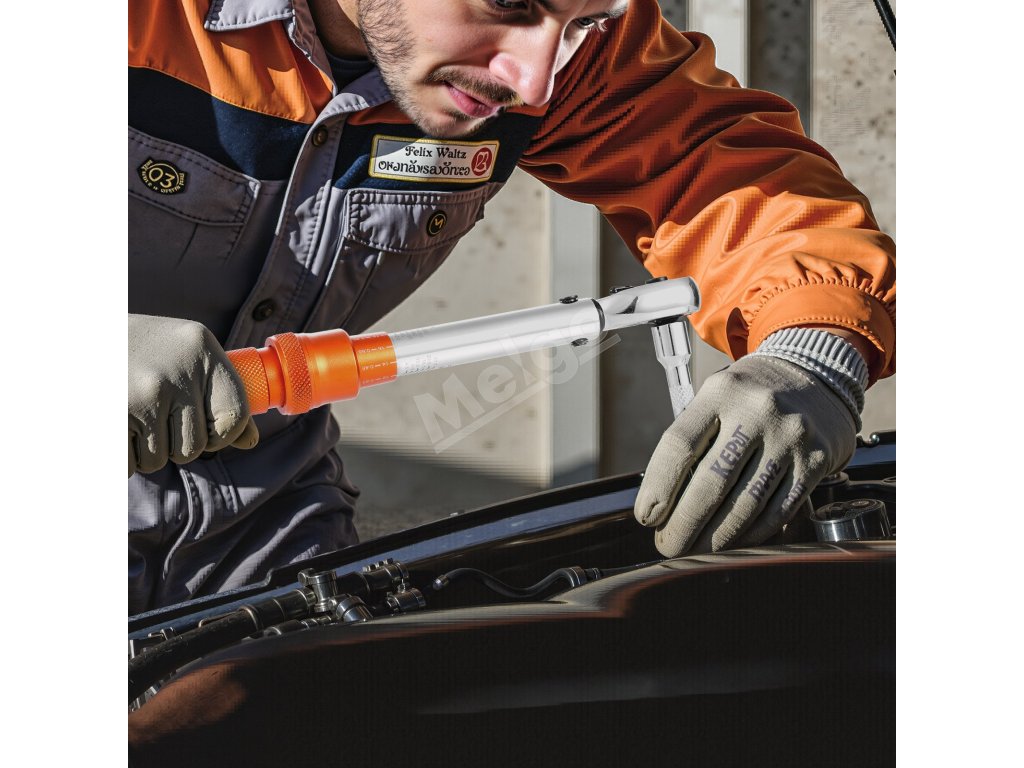 Prednastavená presnosť krútiaceho momentu ±3 % spĺňa potreby presných prístrojov a špičkovej údržby automobilov. Ráčna so 72 zubami sa pri každom kliknutí otočí o 5°, čo umožňuje jednoduchú prácu v stiesnených priestoroch alebo pri potrebe jemného nastavenia.