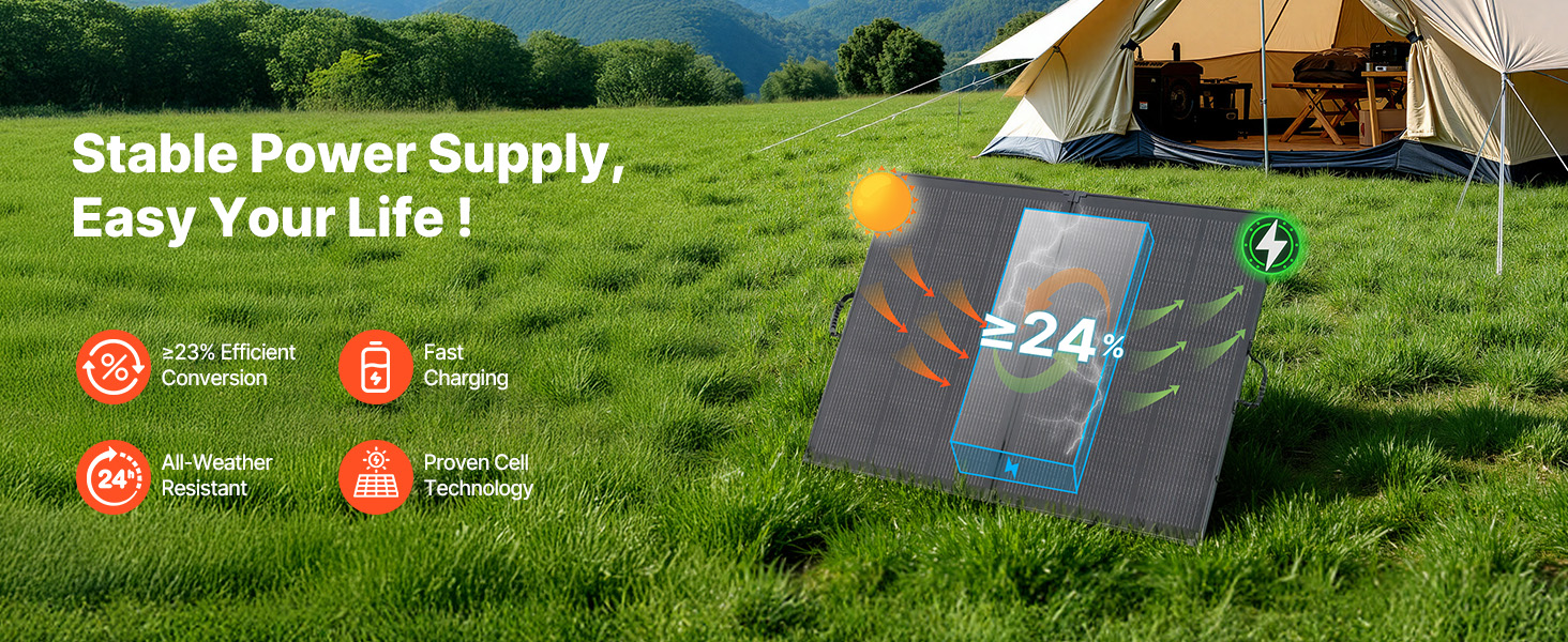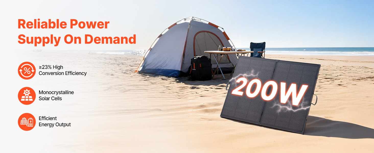 Napájajte svoje outdoorové dobrodružstvá pomocou nášho prenosného skladacieho solárneho panelu s výkonom 200 W. Vďaka vysoko účinným monokryštalickým článkom a účinnosti konverzie ≥23 % poskytuje spoľahlivé napájanie pre rýchle nabíjanie zariadení – je to nevyhnutný spoločník na outdoorové kempovanie, výlety karavanom a turistiku.