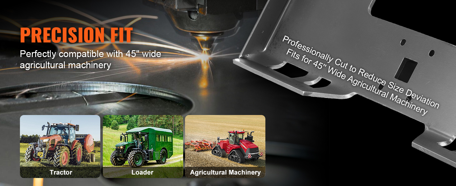 Konštrukcia univerzálnej veľkosti je vhodná pre poľnohospodárske stroje s vnútornou šírkou 45" od rôznych značiek.