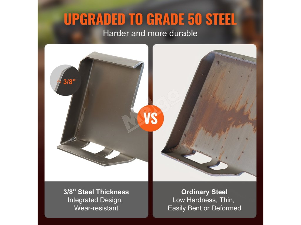 Nástavec na šmykom riadený traktor s vylepšenou oceľou triedy 50 je odolný proti opotrebovaniu a deformácii, čo zaručuje dlhodobé používanie.