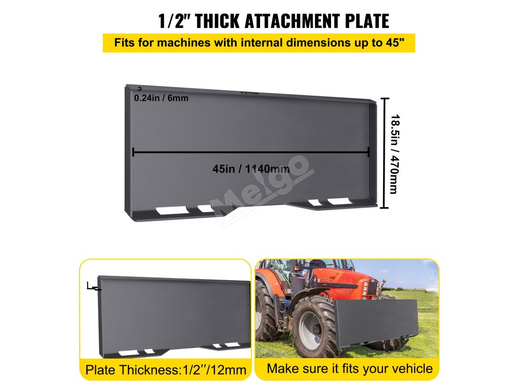 Pre našu rýchloupínaciu dosku pre smykom riadené vozidlá sú vhodné len traktory alebo nakladače s vnútorným rozmerom nepresahujúcim 45 palcov. Dostupné značky nakladačov sú John Deere, Kubota, Bobcat a Mahindra.