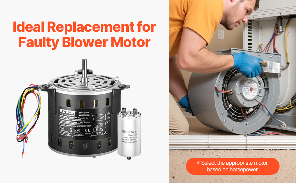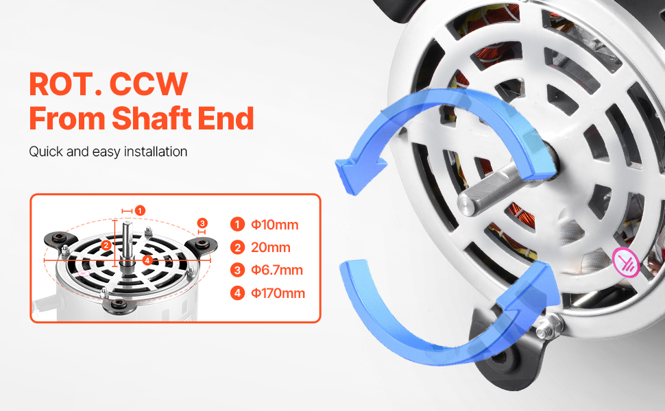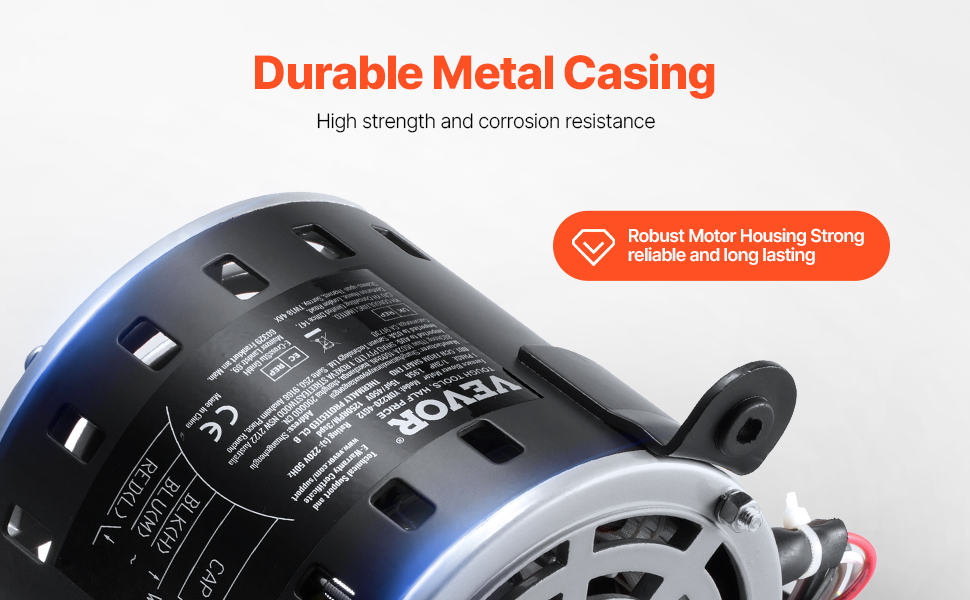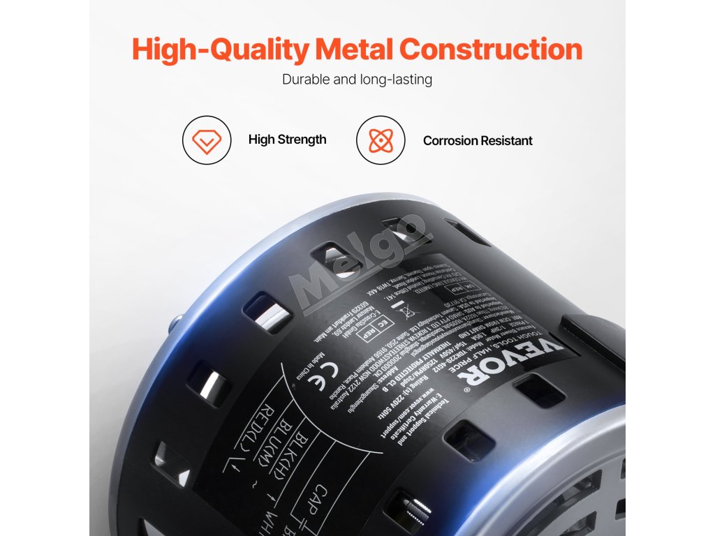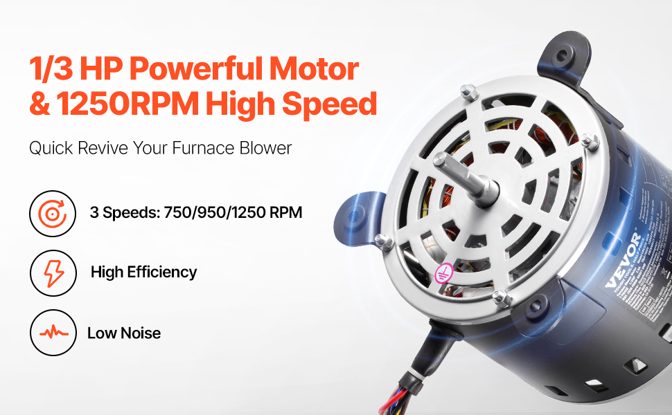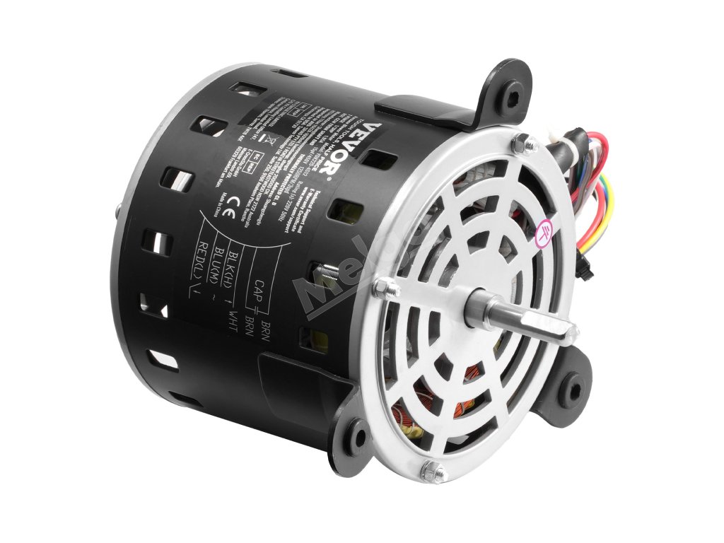 Motor ventilátora pece VEVOR 1/3HP má 3 rýchlosti (1250, 950 a 750 ot./min.) a pracuje pri 220 V s prúdom 1,95 A. S dĺžkou hriadeľa 20 mm, priemerom hriadeľa 10 mm, ROT. CCW od konca hriadeľa a kondenzátorom CBB60 15μF/450V je ideálnou voľbou pre klimatizačné kanálové systémy a pece.