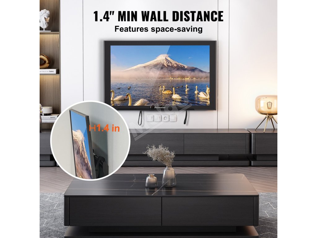 Držiak televízora umožňuje vzdialenosť 1,4 palca od steny, pričom zaberá menej ako 1 štvorcový meter, čo je úspora miesta.