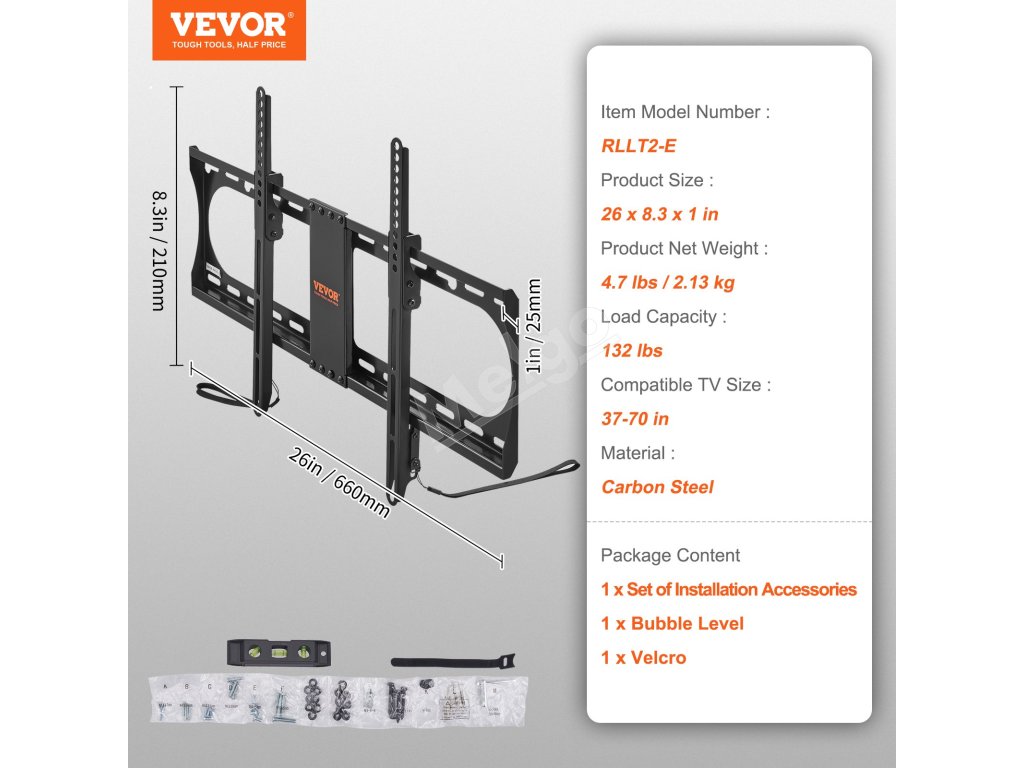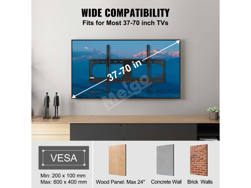 Kompatibilný s televízormi s uhlopriečkou od 37 do 70 palcov, náš pevný nástenný držiak na TV funguje s rôznymi značkami a modelmi.