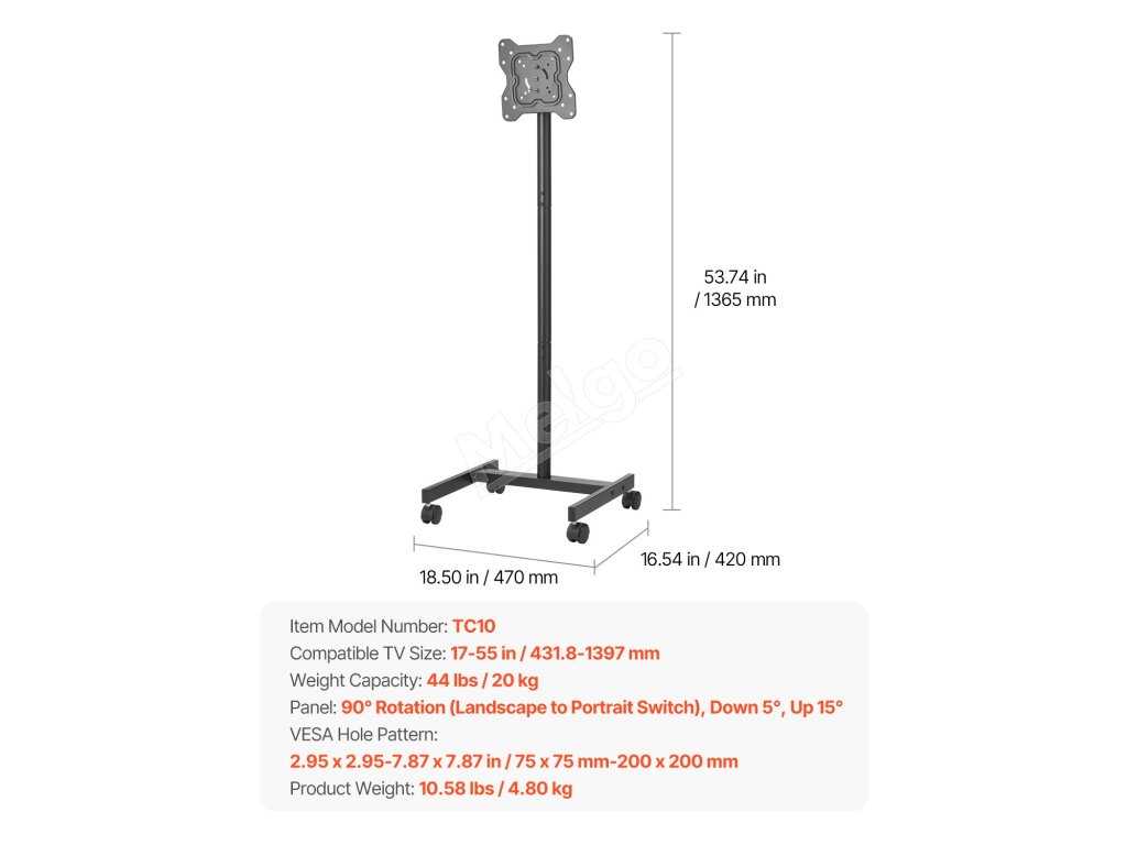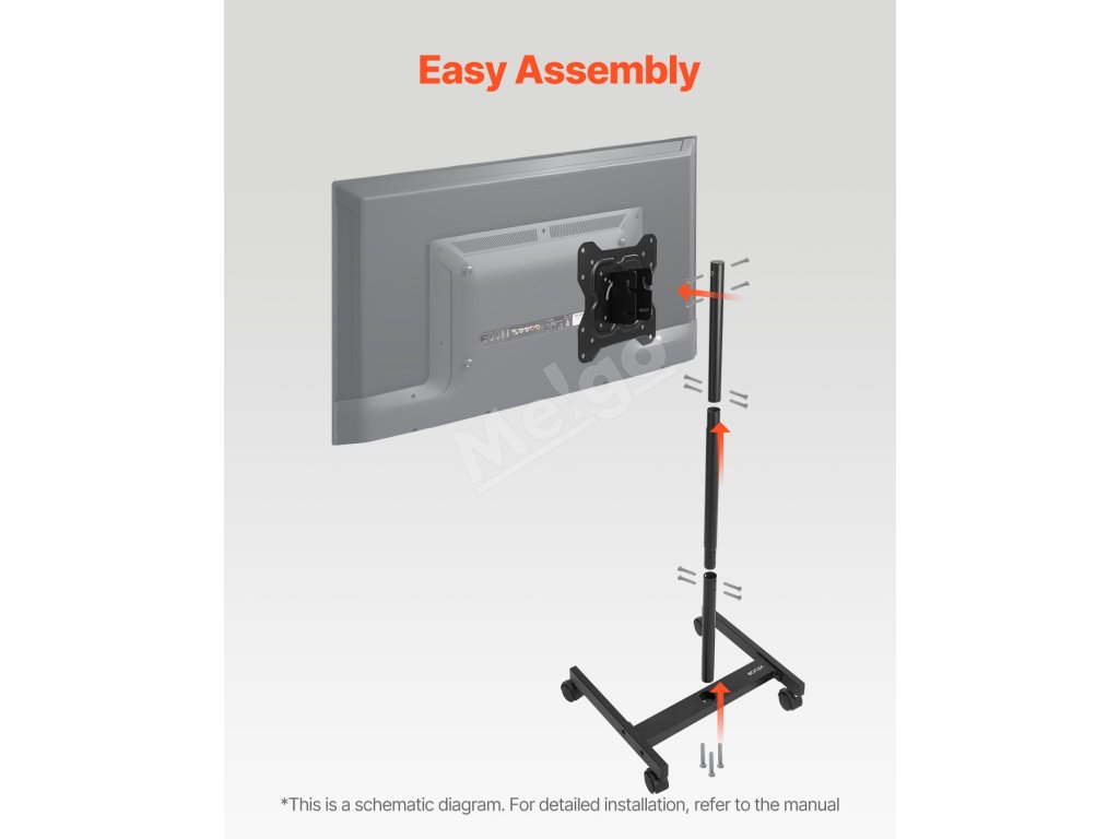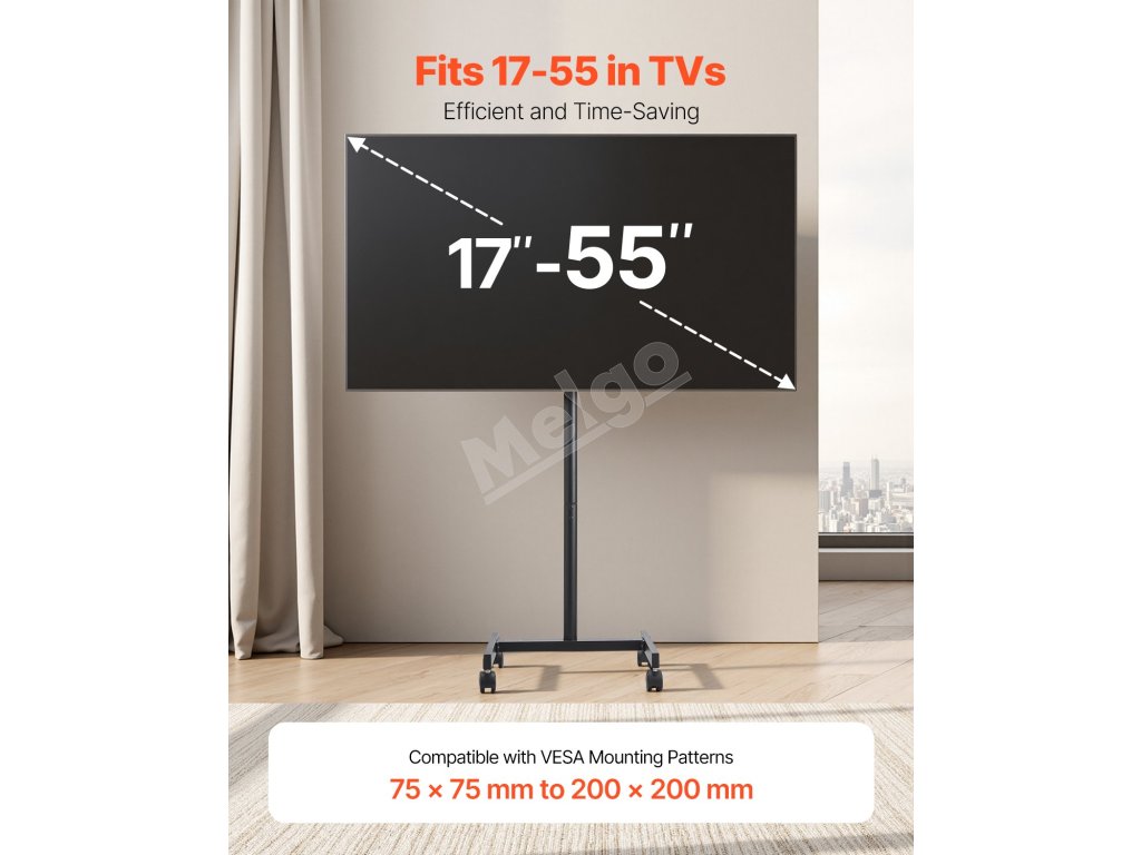 Tento prenosný držiak na TV má kompaktný dizajn, ktorý je ideálny do malých priestorov a vhodný pre tých, ktorí nechcú, aby ich TV zaberal celú miestnosť.