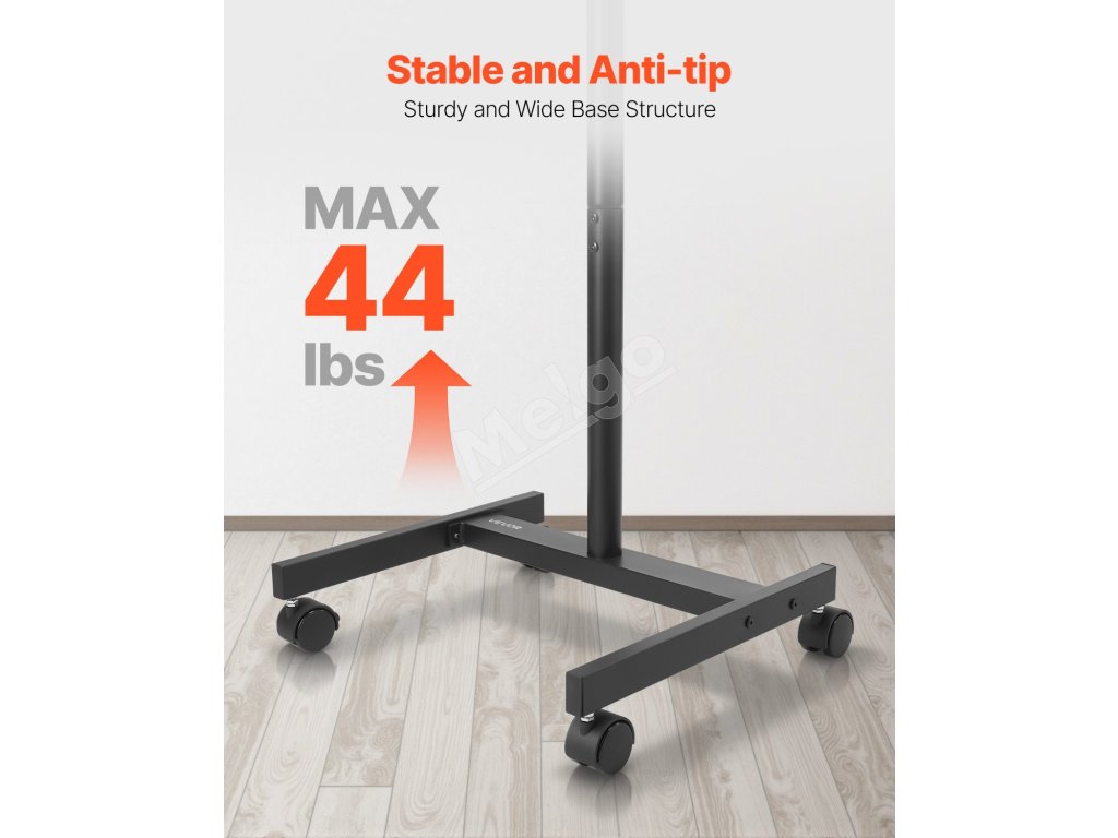 Náš pohyblivý stojan na televízor je navrhnutý tak, aby bol stabilný a uniesol až 44 kg, čo zaručuje, že televízor zostane počas sledovania stabilný a nebude sa kývať, aby ste si mohli vychutnať uvoľnený zážitok.