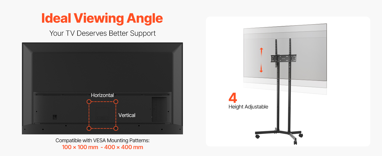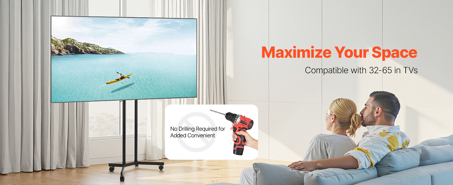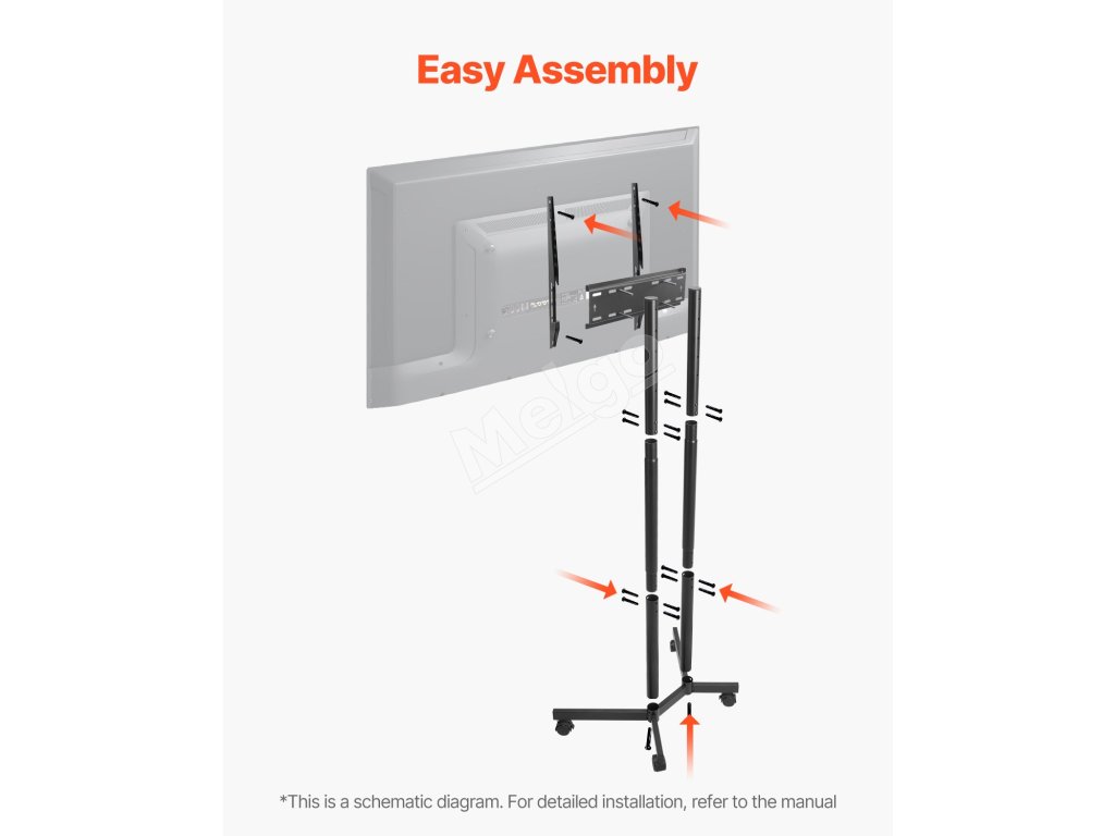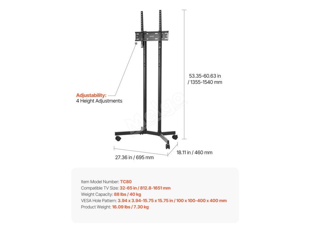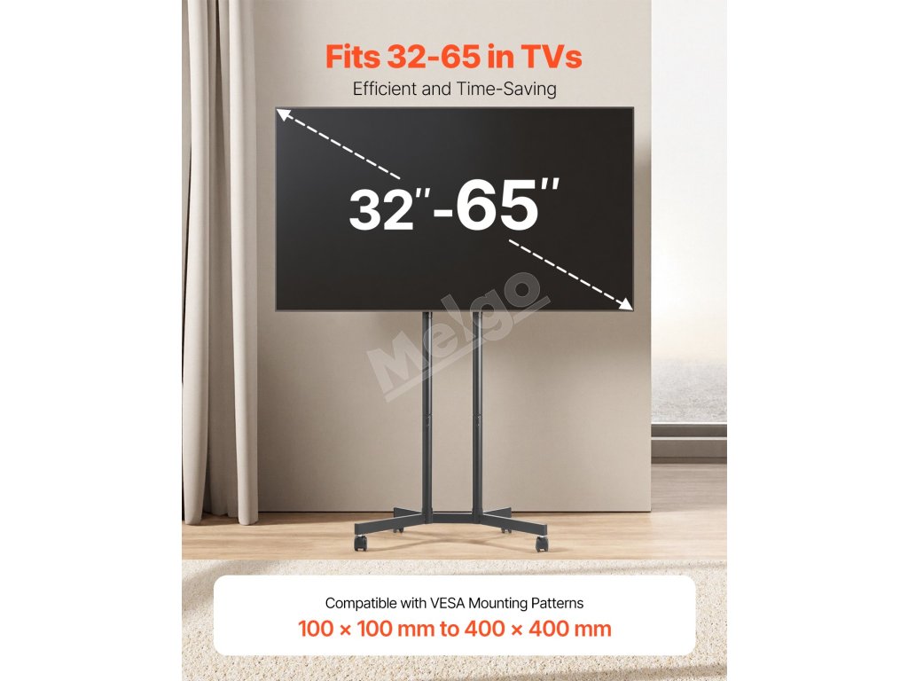 Tento prenosný držiak na TV má kompaktný dizajn, ktorý je ideálny do malých priestorov a vhodný pre tých, ktorí nechcú, aby ich TV zaberal celú miestnosť.