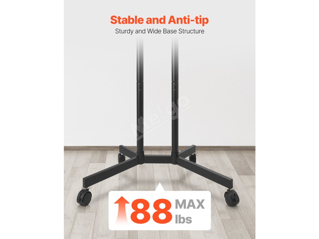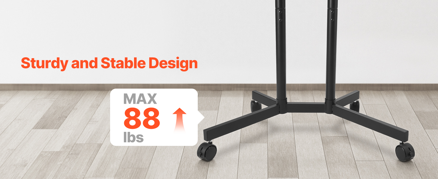 Náš pohyblivý stojan na televízor je navrhnutý tak, aby bol stabilný a uniesol až 88 kg, čo zaručuje, že televízor zostane počas sledovania stabilný a nebude sa kývať, aby ste si mohli vychutnať uvoľnený zážitok.