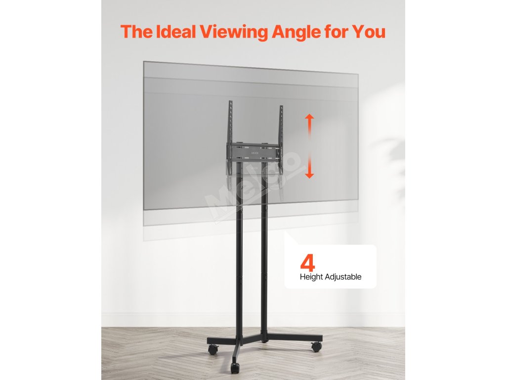 Vďaka rôznym možnostiam nastavenia sa tento pohyblivý stojan na TV prispôsobí rôznym preferenciám sledovania a zabezpečí, aby bol váš TV vždy v ideálnej výške na pohodlné sledovanie.