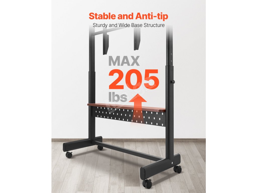 Náš pohyblivý stojan na televízor je navrhnutý tak, aby bol stabilný a uniesol až 205 kg, čo zaručuje, že televízor zostane počas sledovania stabilný a nebude sa kývať, aby ste si mohli vychutnať uvoľnený zážitok.