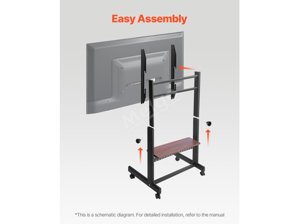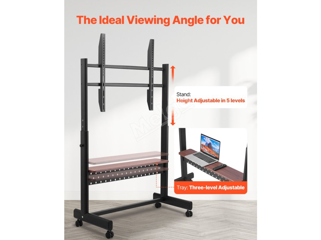 Tento prenosný držiak na TV má kompaktný dizajn, ktorý je ideálny do malých priestorov a vhodný pre tých, ktorí nechcú, aby ich TV zaberal celú miestnosť.