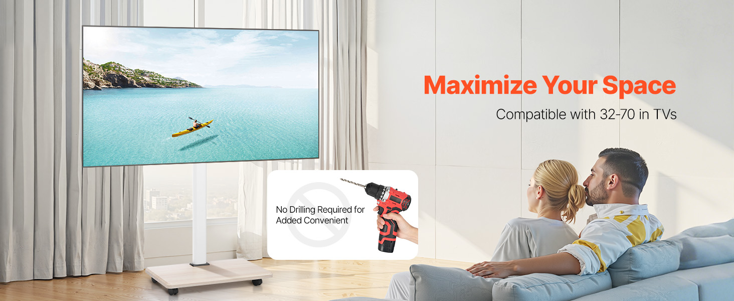 Tento prenosný držiak na TV má kompaktný dizajn, ktorý je ideálny do malých priestorov a vhodný pre tých, ktorí nechcú, aby ich TV zaberal celú miestnosť.