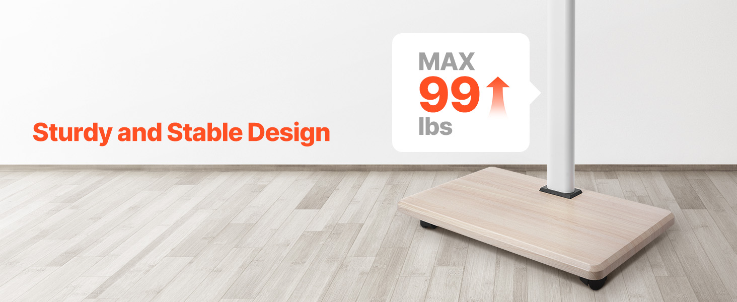 Náš pohyblivý stojan na televízor je navrhnutý tak, aby bol stabilný a uniesol až 99 kg, čo zaručuje, že televízor zostane počas sledovania stabilný a nebude sa kývať, aby ste si mohli vychutnať uvoľnený zážitok.