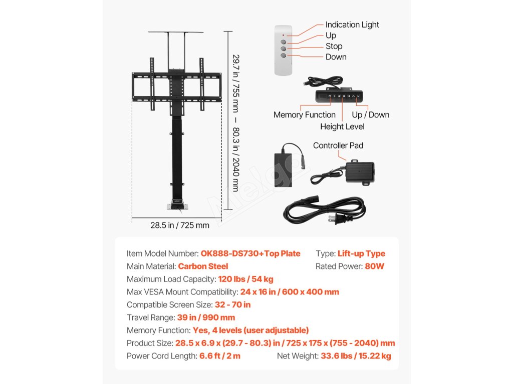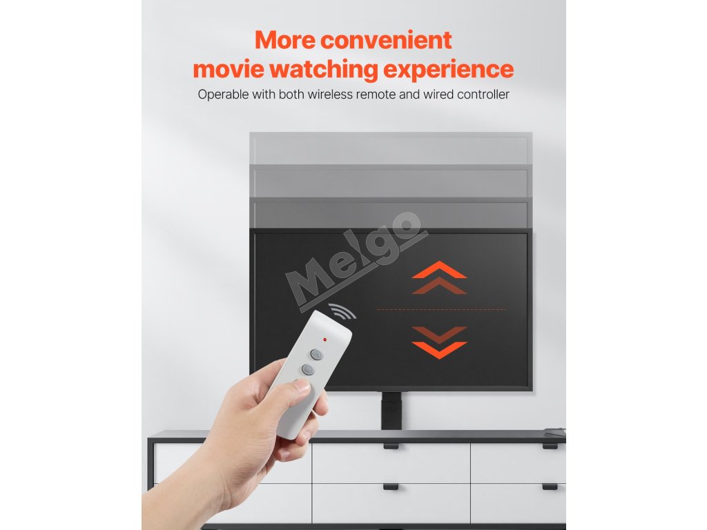 Tento motorizovaný zdvihák televízora možno umiestniť do jedinečnej skrine alebo skrinky a skryť tak televízor, keď sa nepoužíva. Pomocou diaľkového ovládania môžete televízor jednoducho zdvíhať a spúšťať, čo vám umožní nastaviť si ideálny uhol sledovania v rôznych nastaveniach.